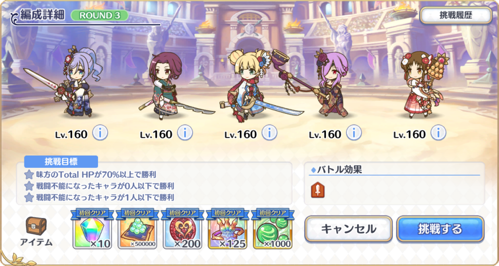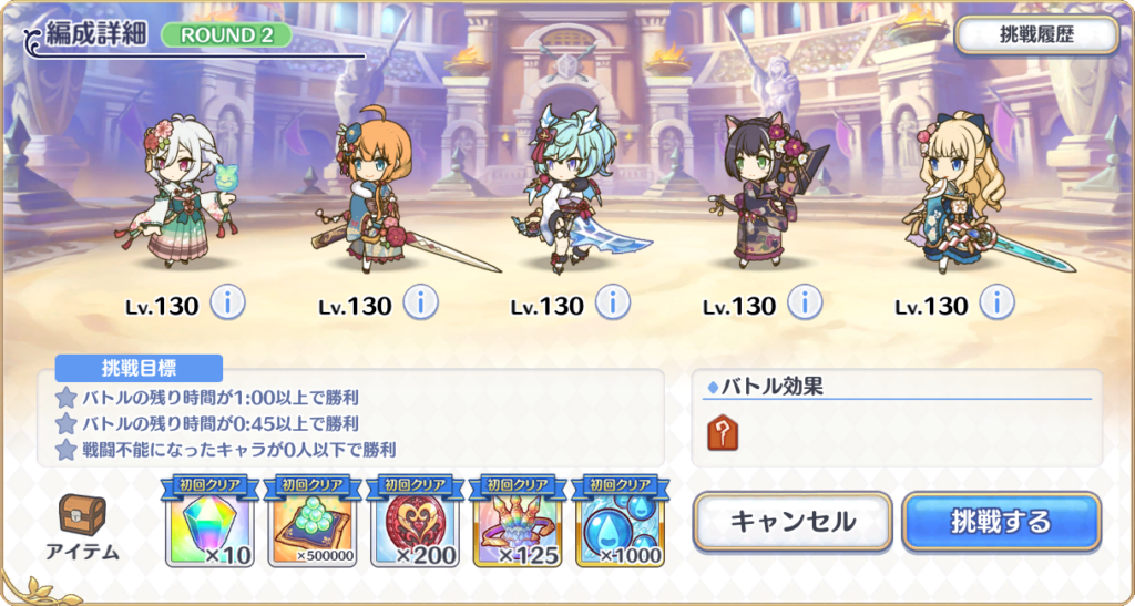 | ユイ(ニューイヤー) | 100 | 3 | 0 | 【魔法】 後衛の、補助魔法に特化した、晴れ着姿の癒し手。 自身の攻撃力と引き換えに強力なバリアと継続回復状態を味方全体に付与する。絶大な防御能力は他を圧倒する。 | ||